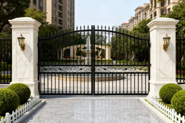 20FT x 7FT Heavy-Duty Bi-Parting Iron Gate – Galvanized Steel Driveway Entrance Gate
