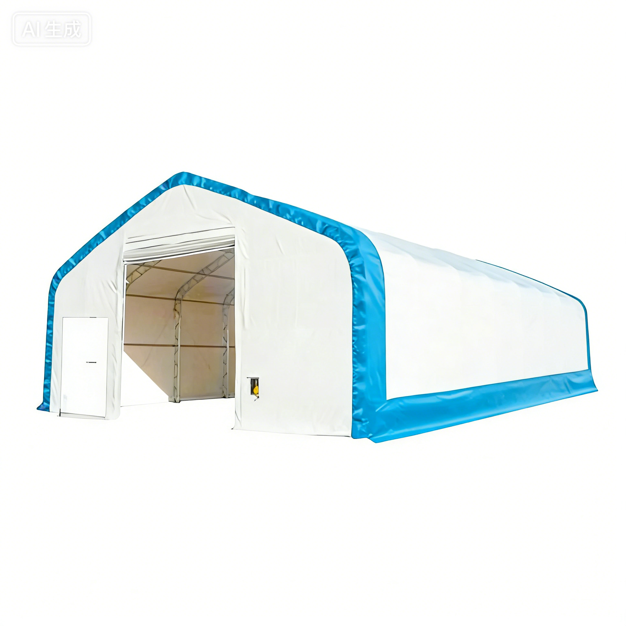 The Double Truss Storage Shelter (W70′ × L120′ × H28′) delivers premium PVC-coated polyester fabric, it withstands extreme weather including…