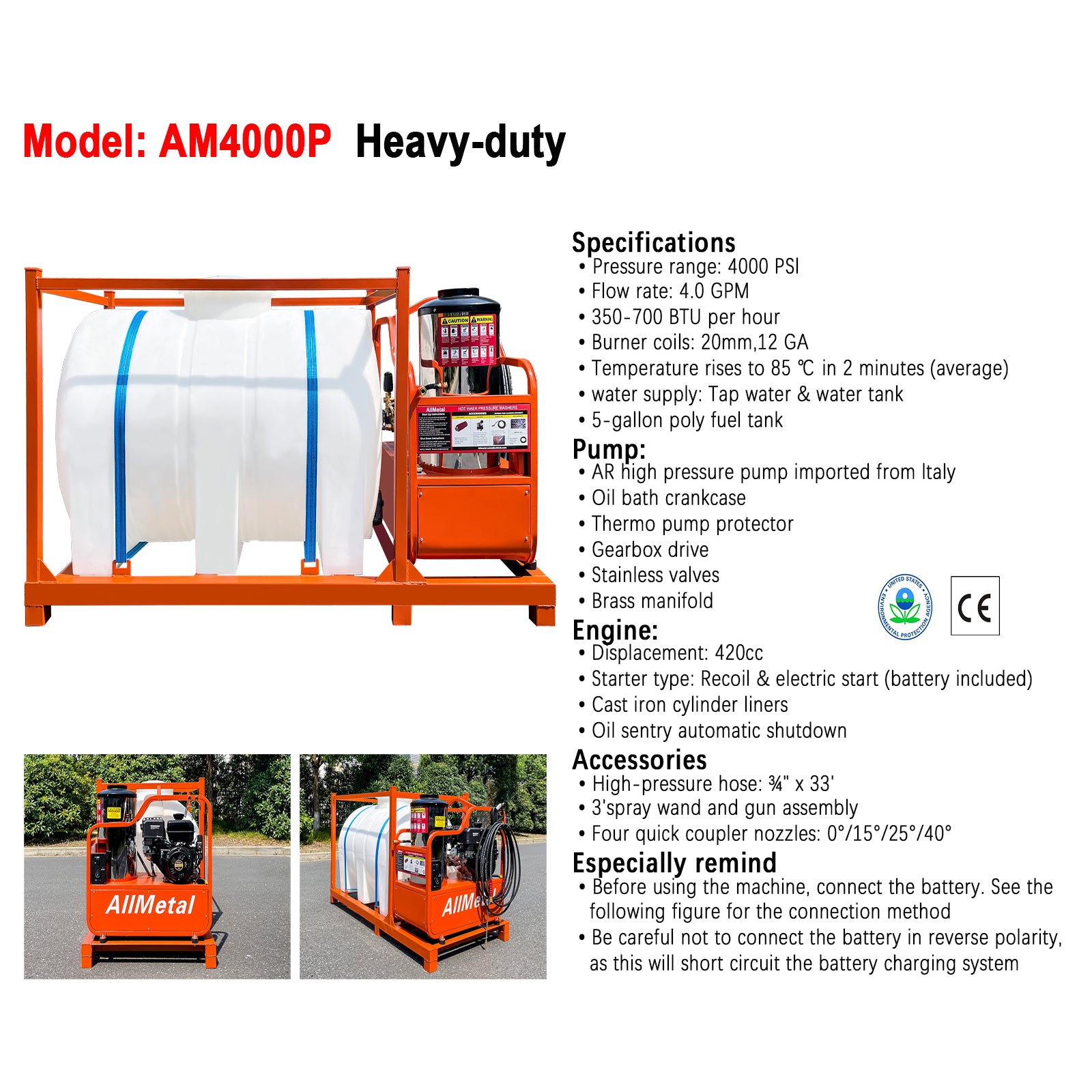 • 4000 PSI pressure & 4.0 GPM flow rate — commercial-grade cleaning power