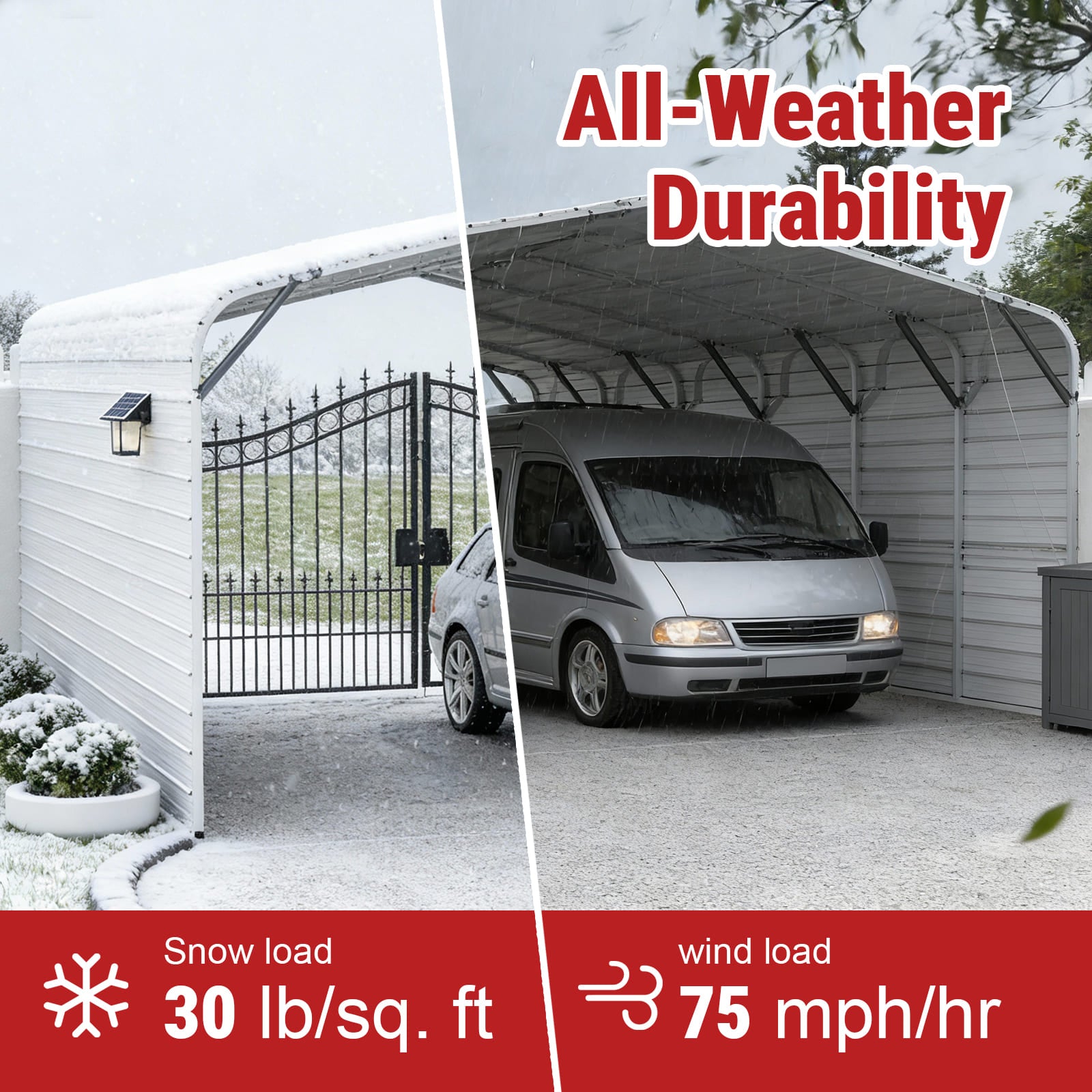 The 20FT × 30FT Metal Garage provides strong, long-term protection for vehicles, tools, and outdoor equipment. Built with a 14-gauge galvanized steel frame and 26-gauge sheet panels, it’s engineered for durability and weather resistance in all conditions.