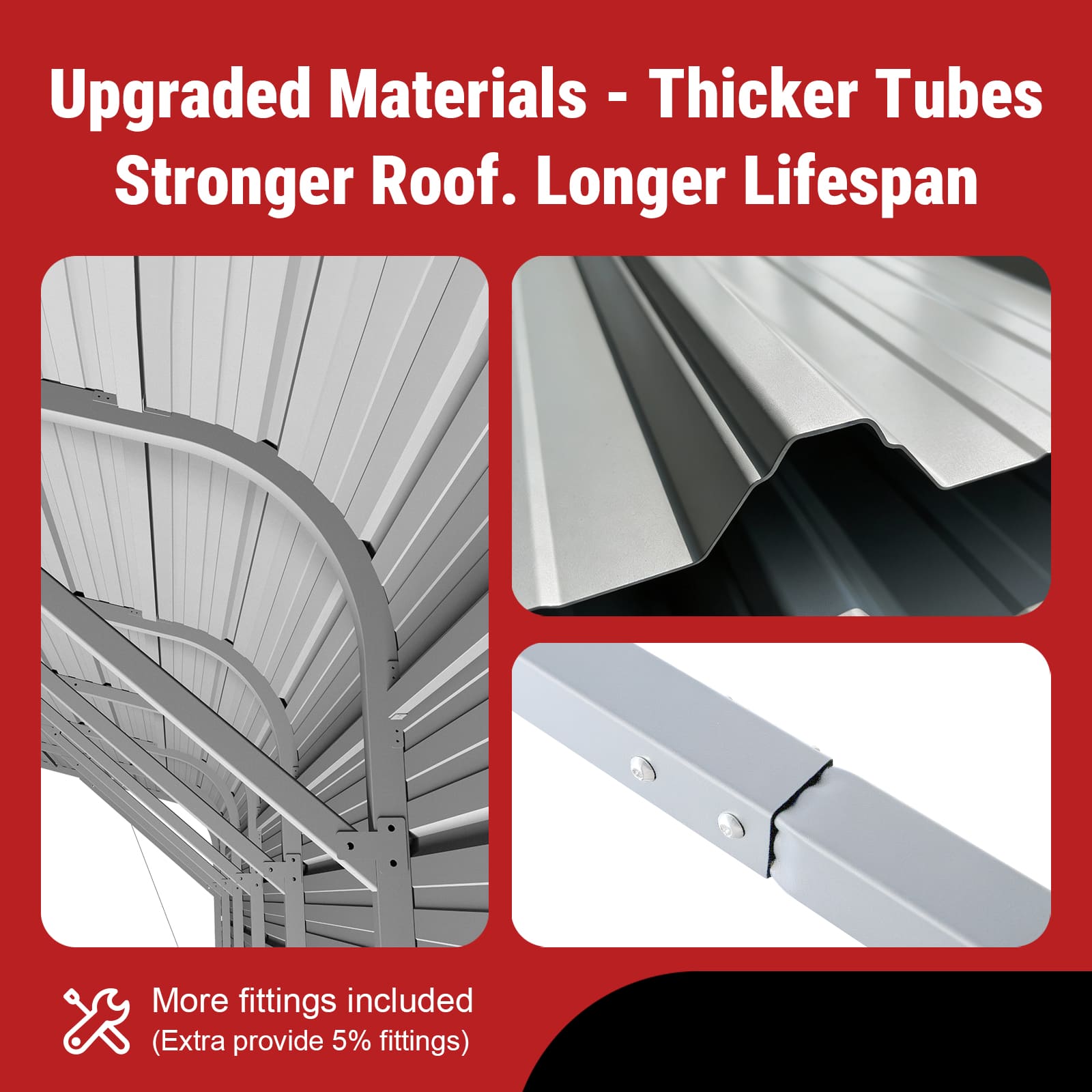 • 14-gauge 2.3″ square-tube frame with 26-gauge metal panels