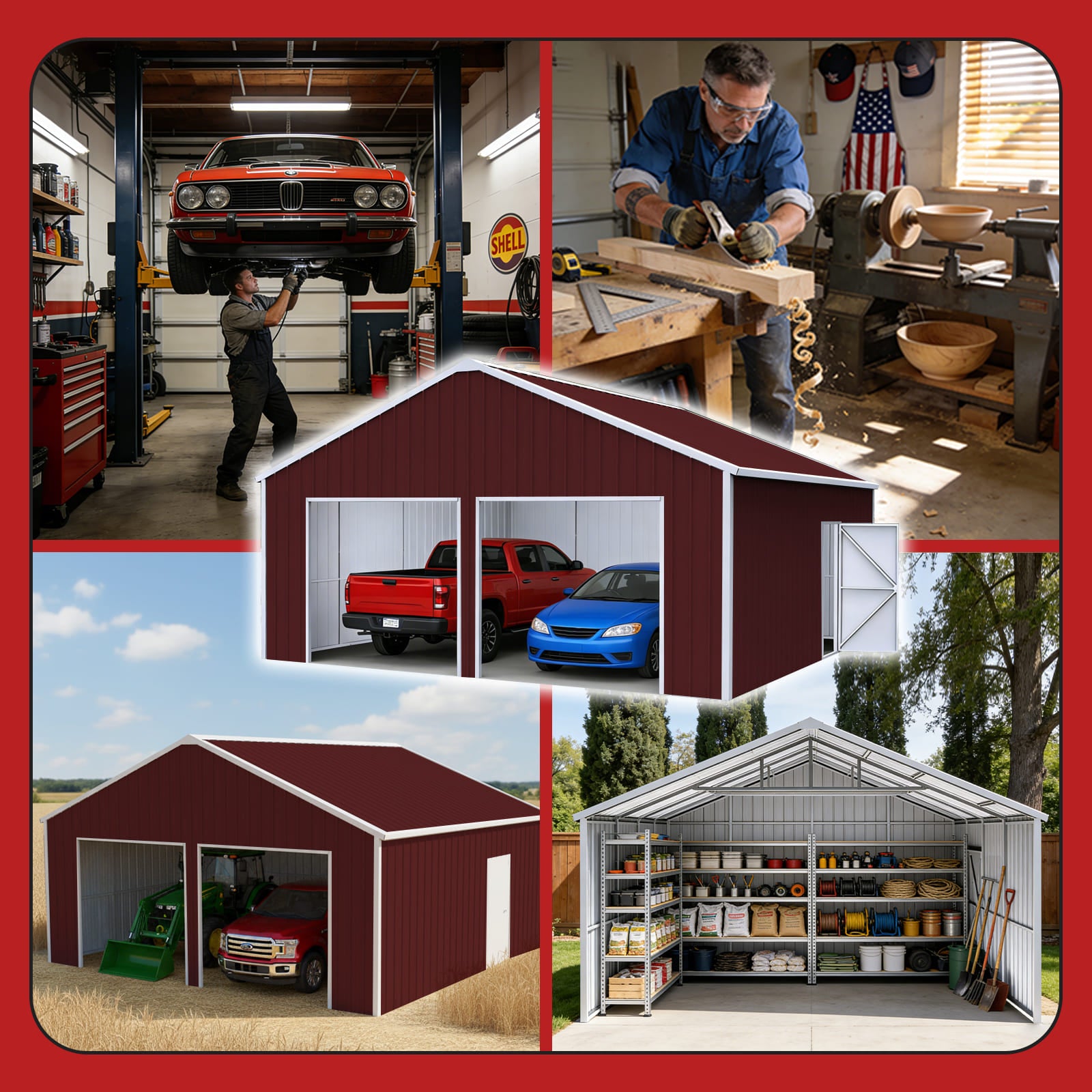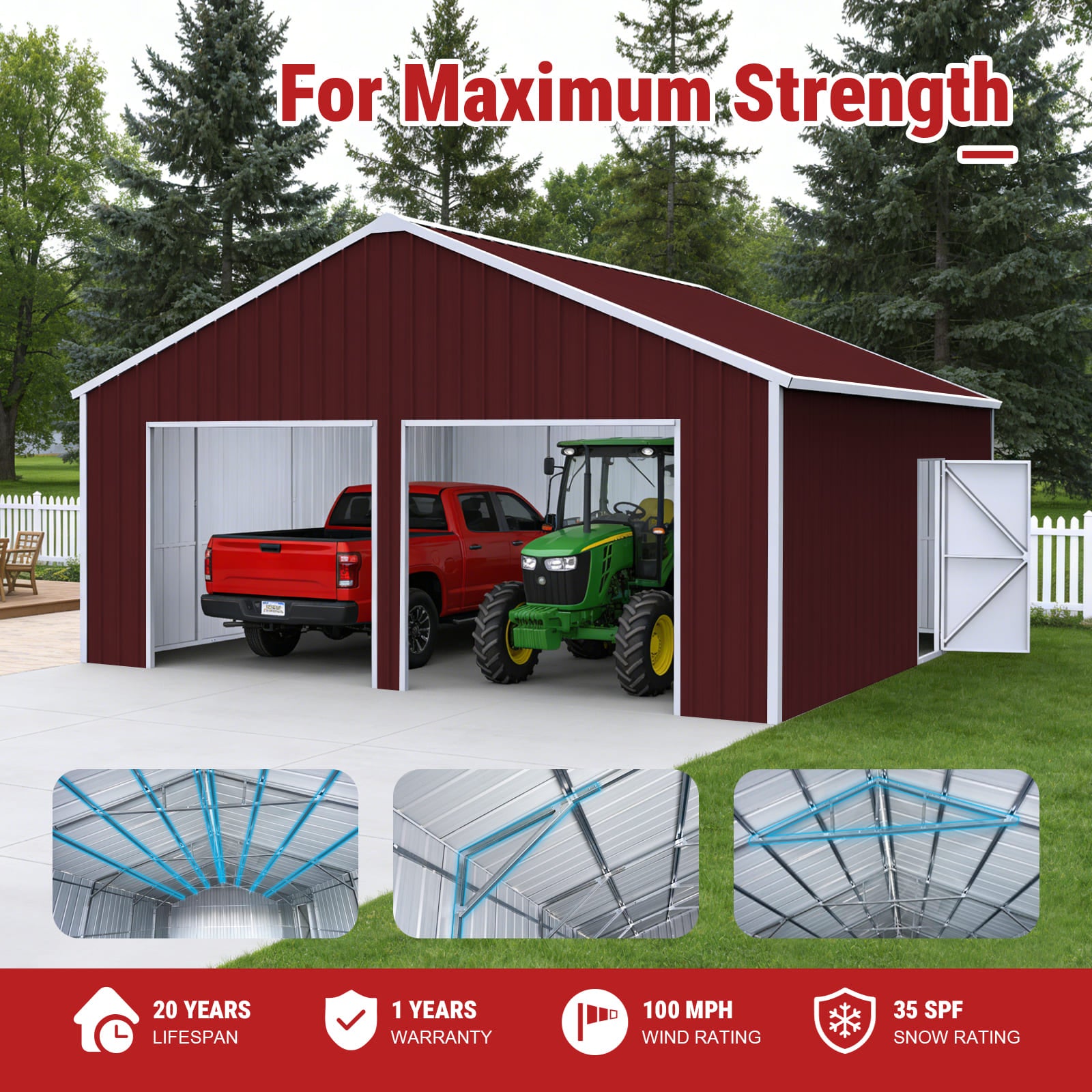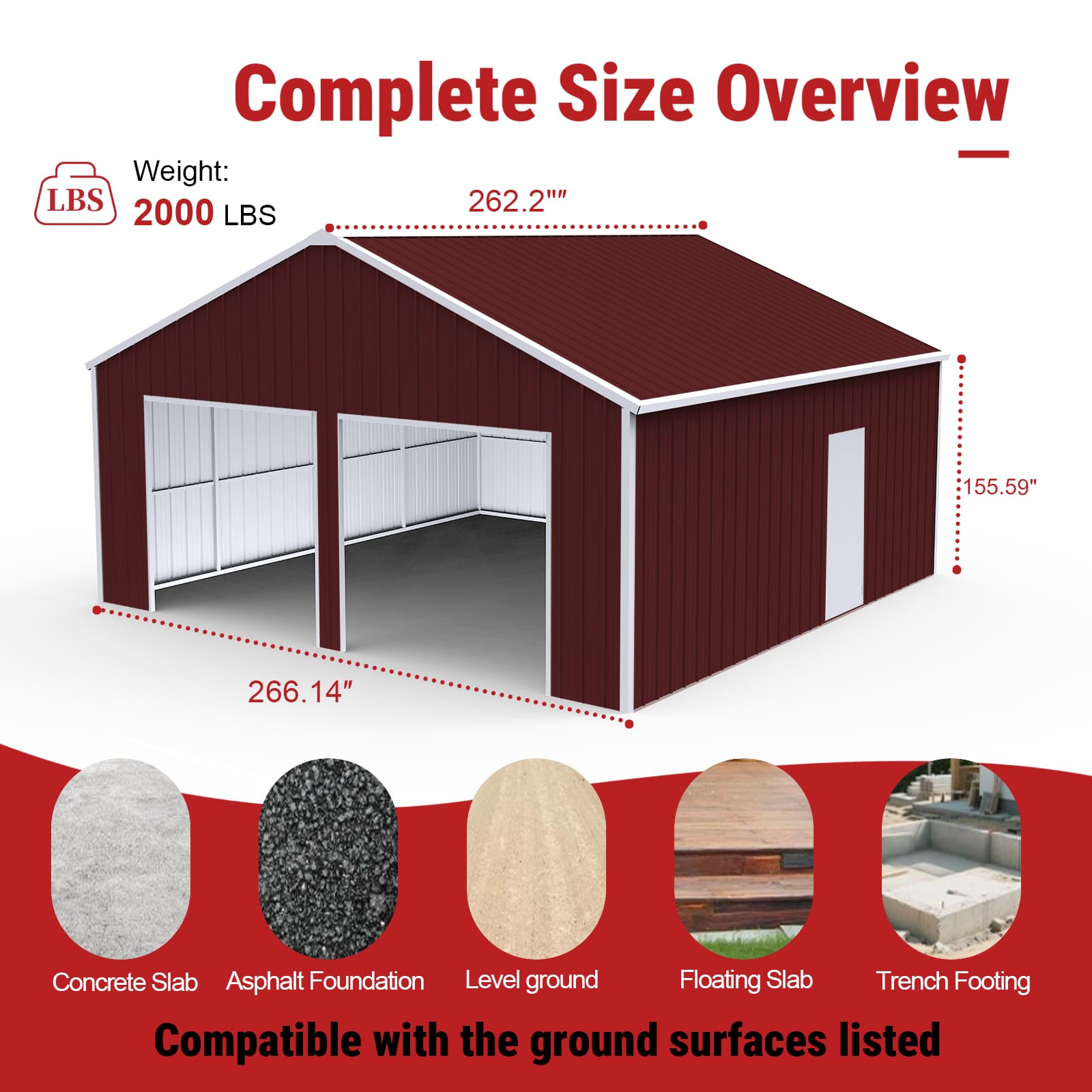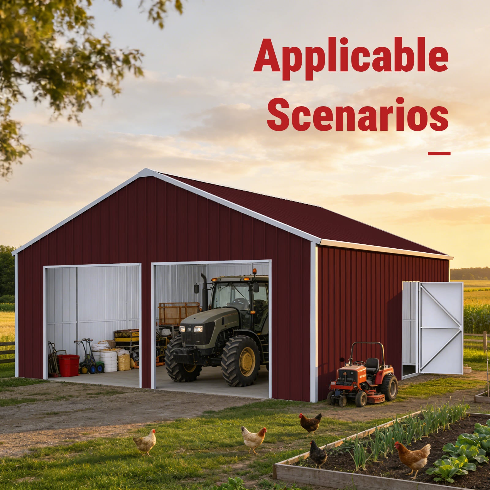 Perfect for farm equipment storage, vehicle parking, tool organization, construction site storage, warehouse overflow, and backyard workshops. The tall 13 ft height accommodates large machinery, while the wide double-door entry makes it easy to load and access items.