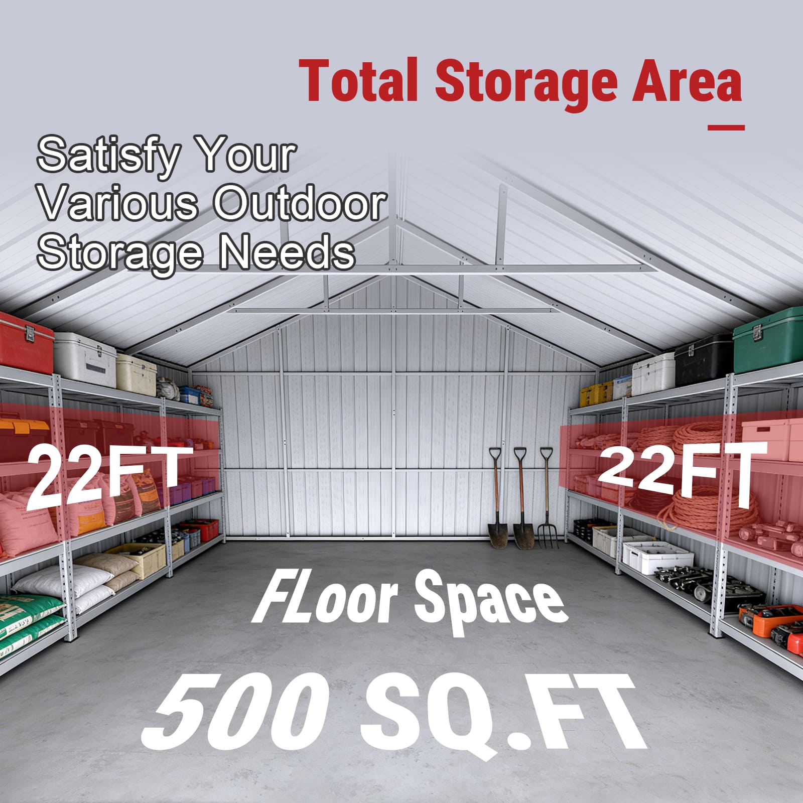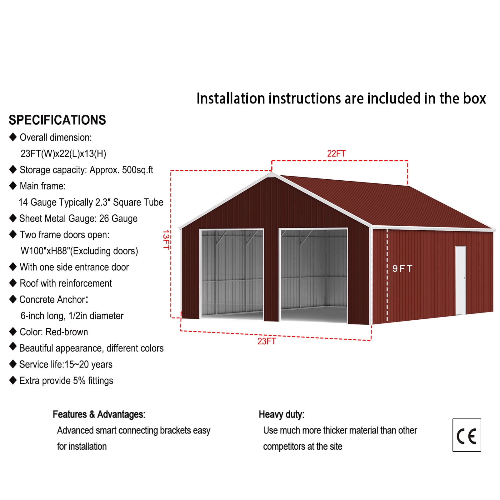 - Overall Dimension: 23 ft (W) x 22 ft (L) x 13 ft (H)