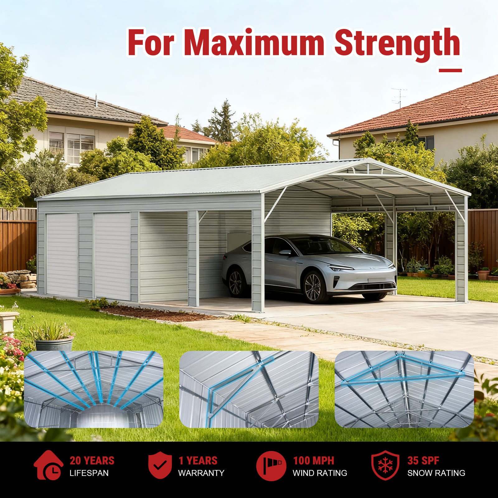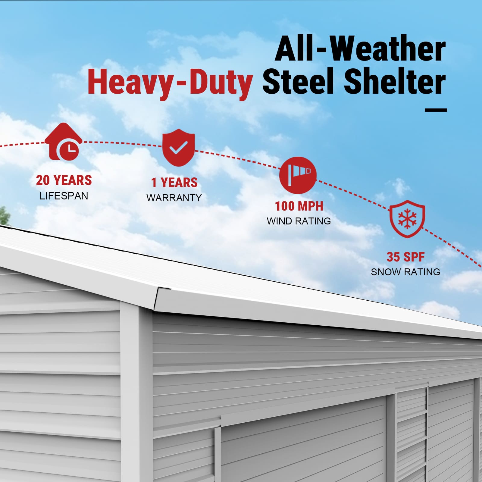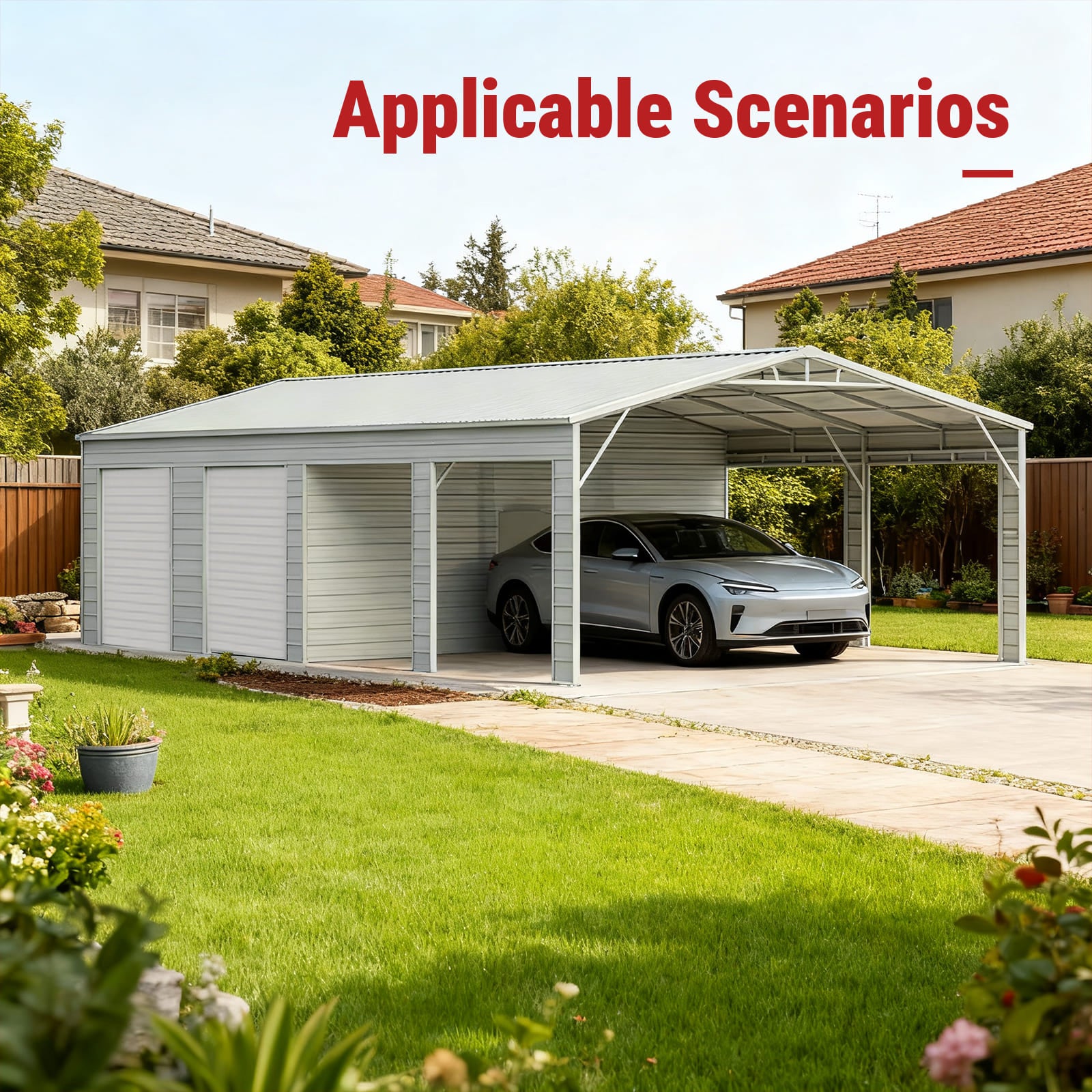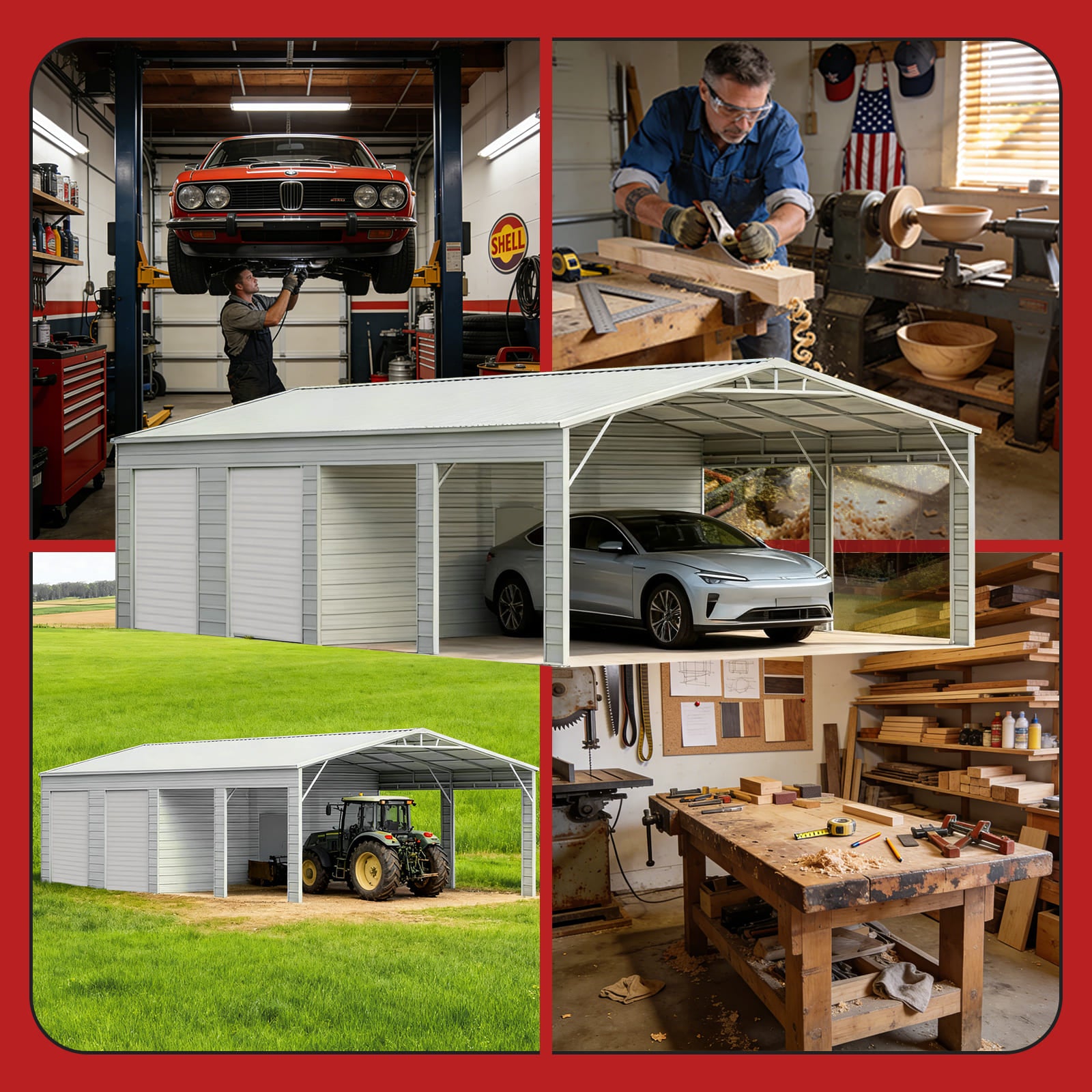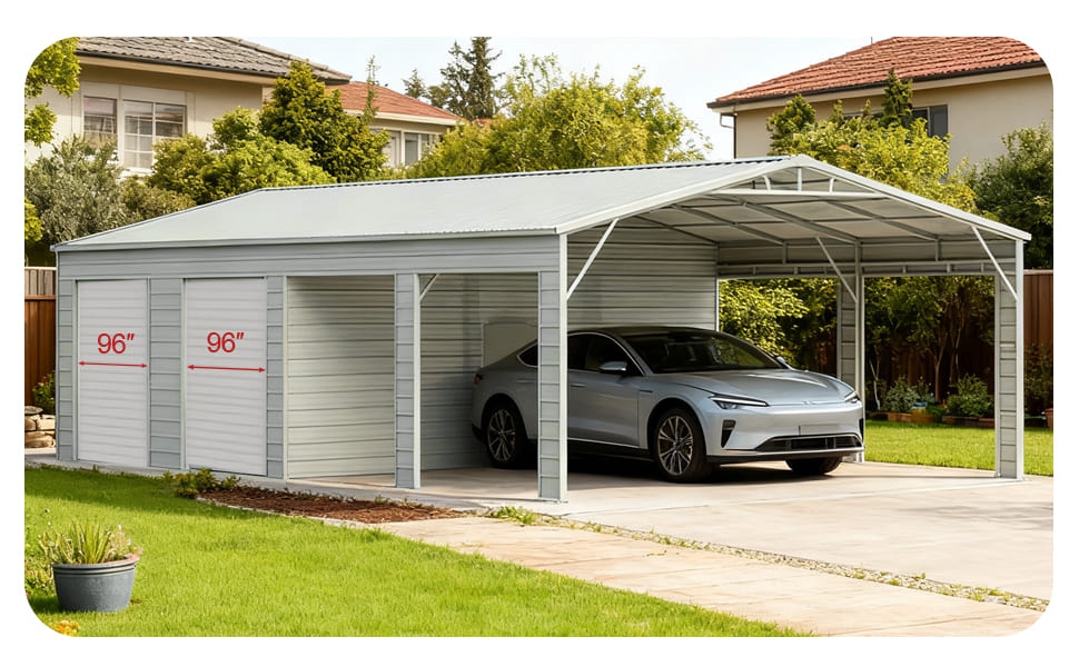 The 23FT × 46FT Metal Garage provides a large, durable space for vehicles, tools, and heavy equipment. Its 14-gauge steel frame and reinforced roof deliver long-lasting strength, even in demanding weather conditions.