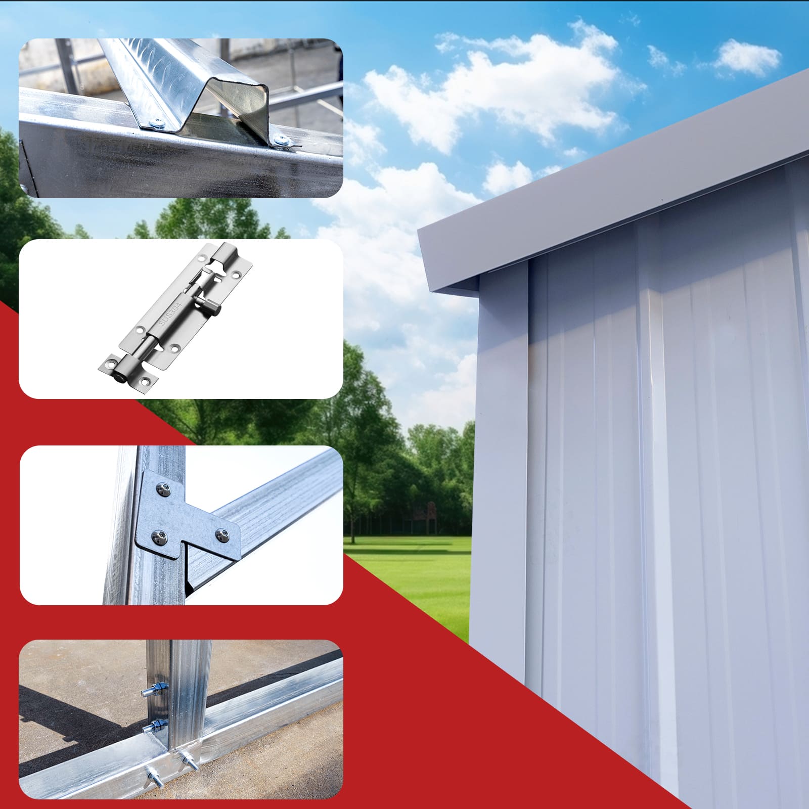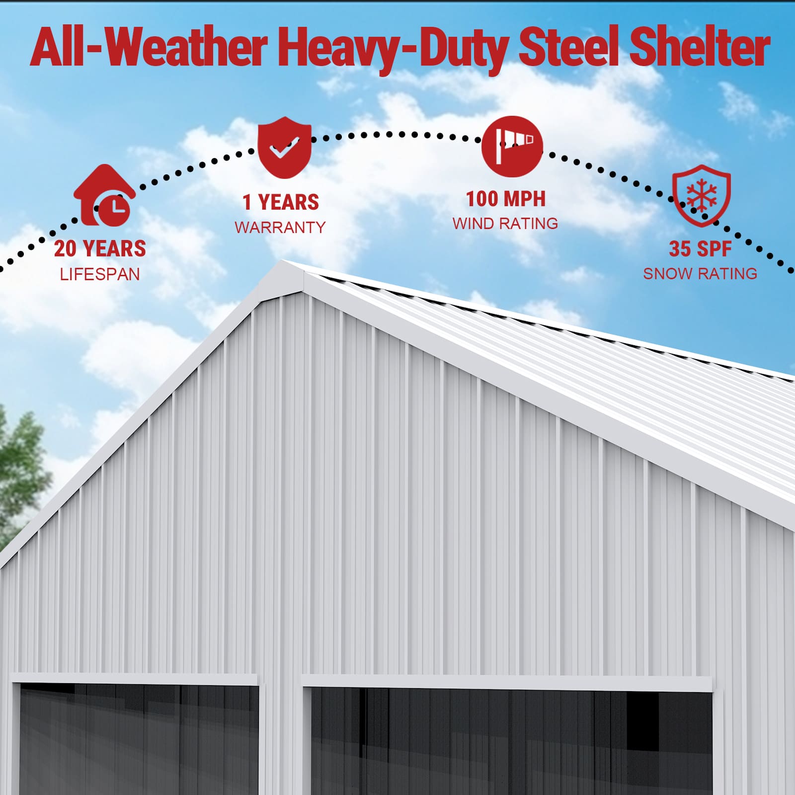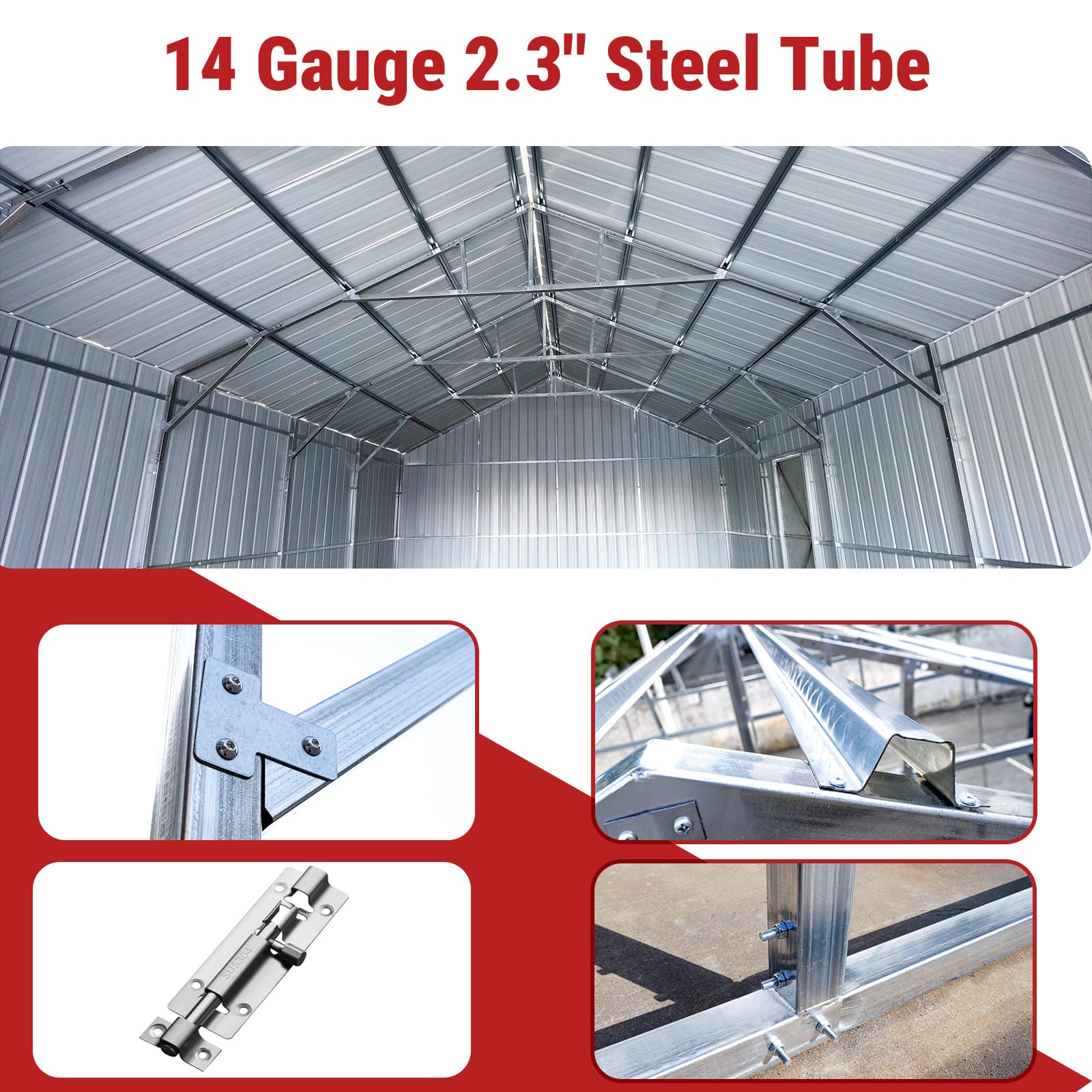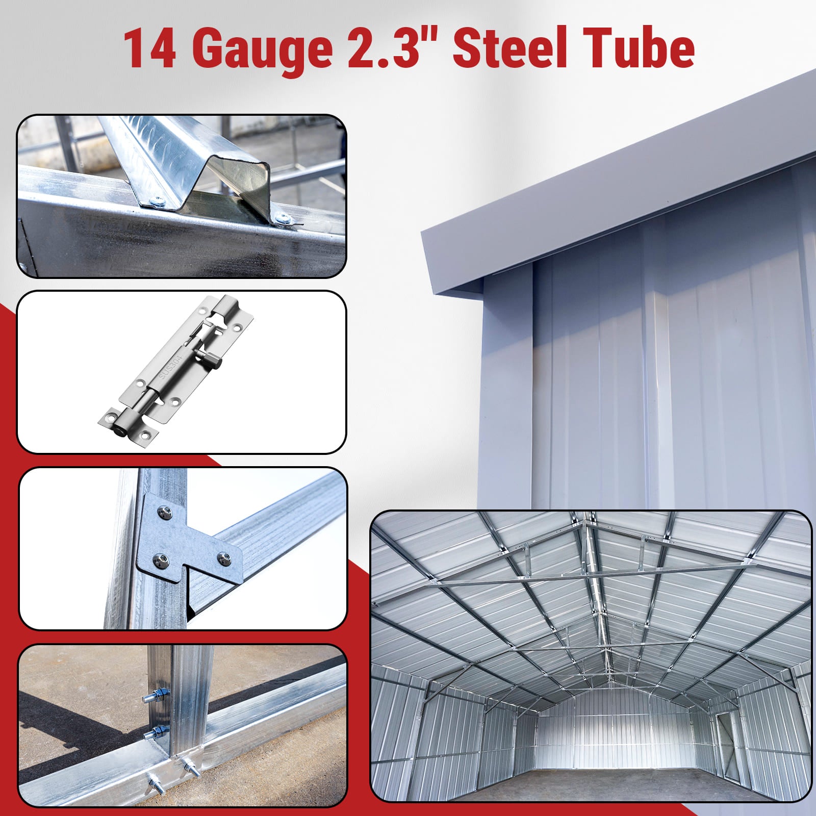 - Reinforced roof, 6″ × ½” concrete anchors, 15–20-year lifespan