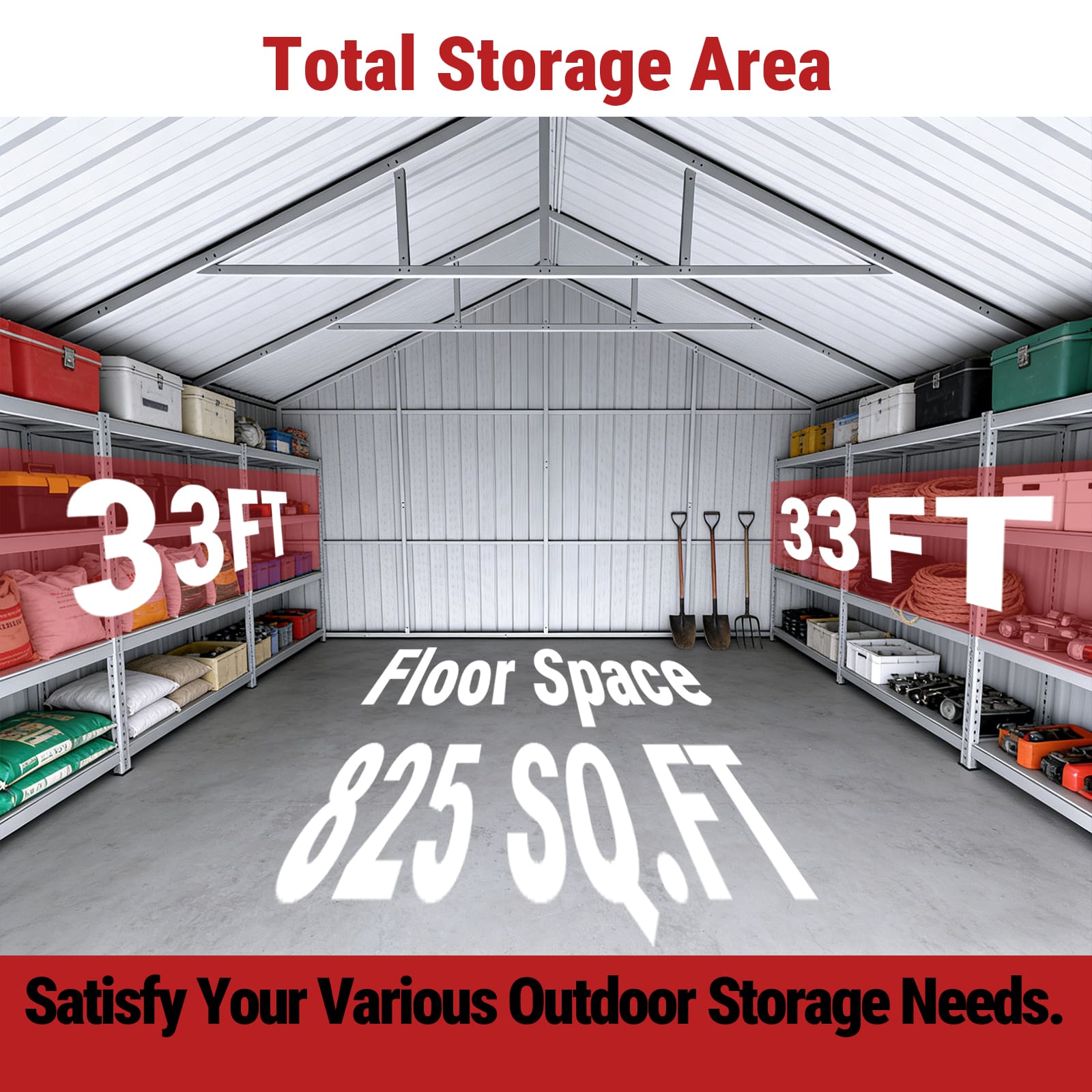 - Overall size: 25FT (W) × 33FT (L) × 14FT (H); wall height 105.5″