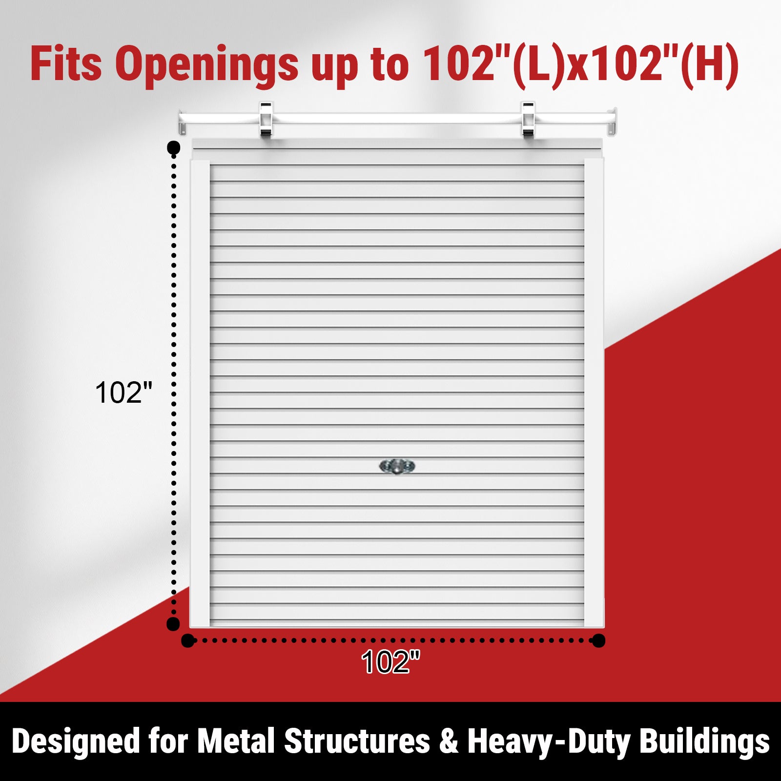 - Precise Fit: Designed for openings up to 102″ L × 102″ H** (2.6 m × 2.6 m) — matches standard shed/garage bays (e.g., W30×60, W50×80, W70×120 models)