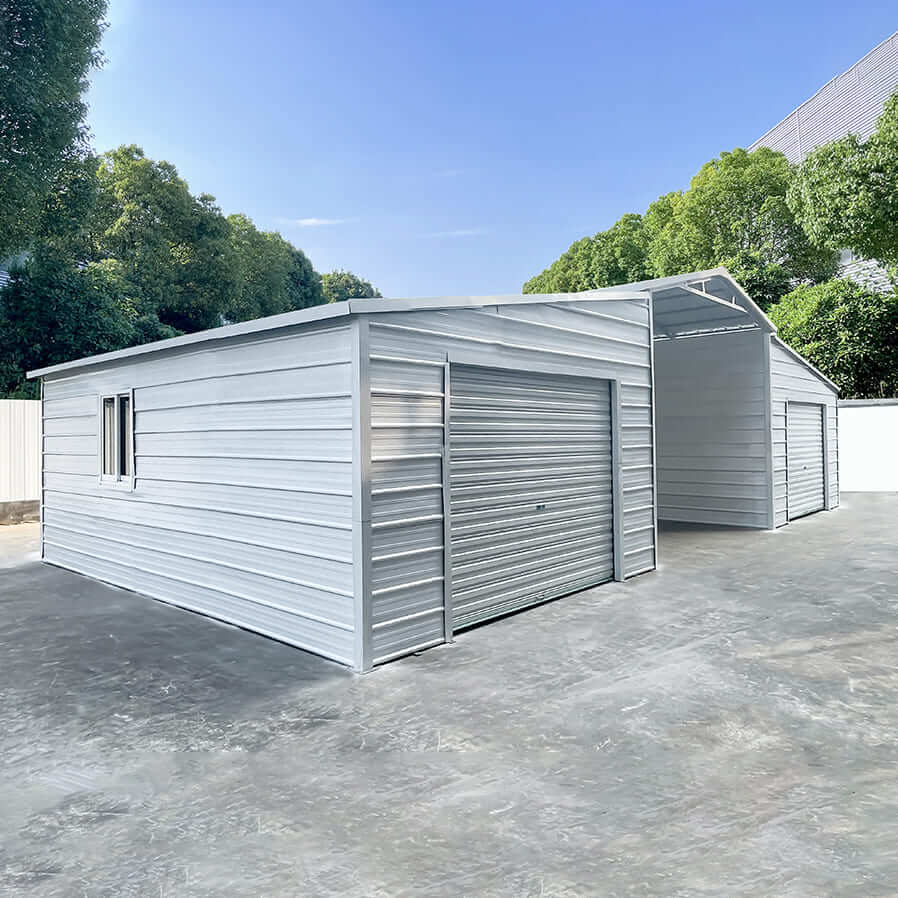 This steel barn is ideal for farm storage, vehicle and equipment protection, workshops, or livestock sheltering. Its reinforced framing and weather-resistant steel panels make it a strong, long-lasting solution for both residential and commercial needs.